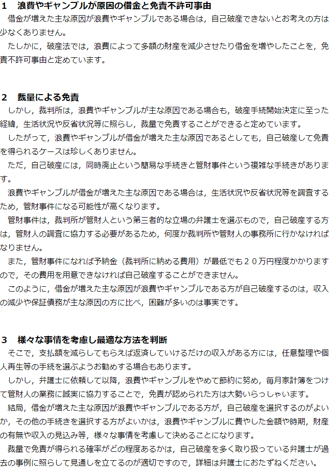 浪費、無駄遣い、ギャンブルで作った借金でも自己破産可能?